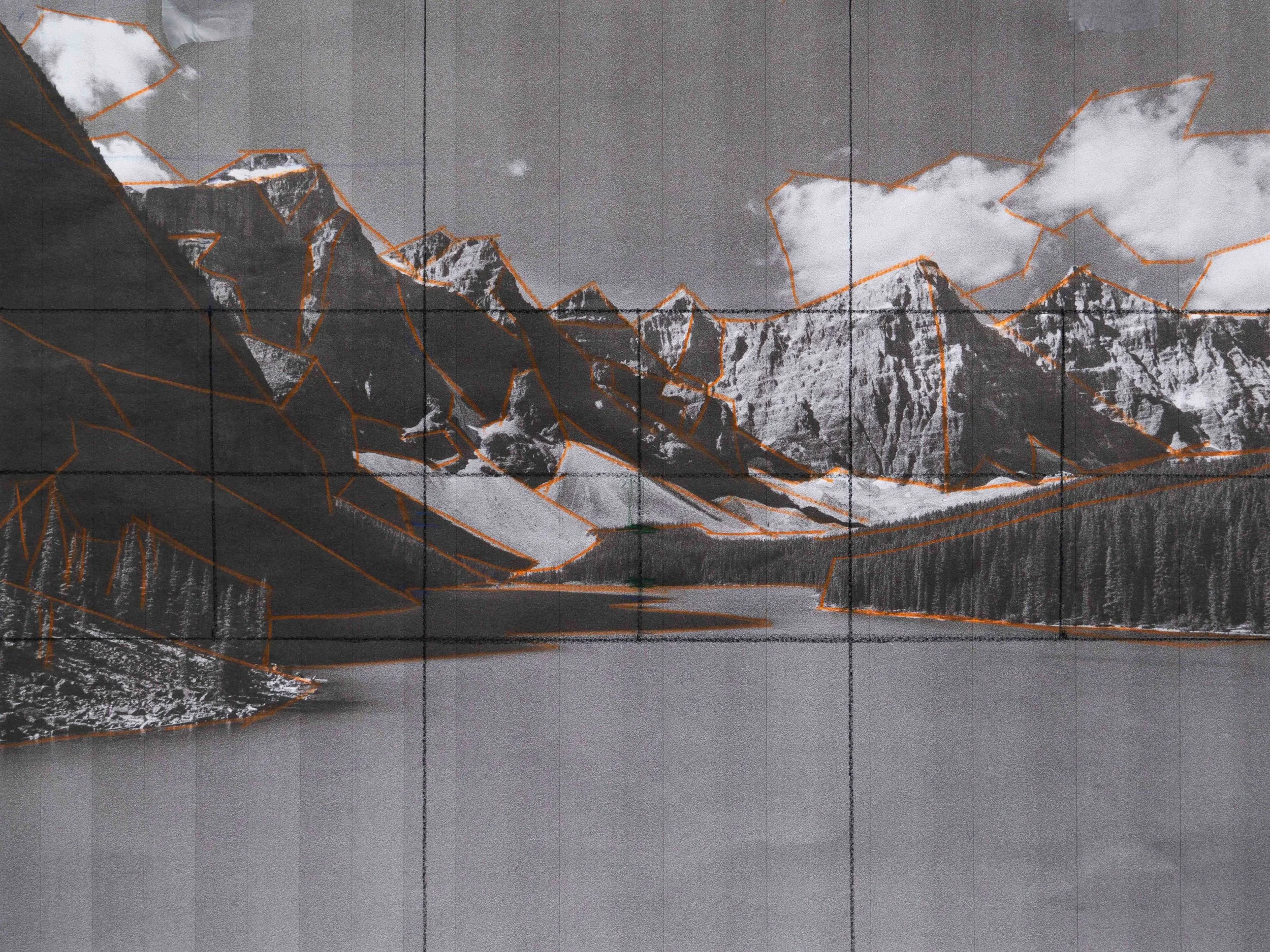 As I mention during class, our sketch is meant to be loose and more of a guidance for our painting, rather than a beautifully finished drawing. We will be painting over it anyways! We want to focus on getting the right perspective and general shapes of our landscape features right and leave the fine detail for our painting process.